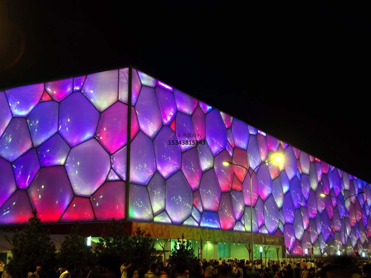 ETFE膜材的應用在很多方面可以取代其他產品而表現出強大的優勢和市場前景。近年來具有代表性的建筑物就是2006年世界杯主賽場德國慕尼黑安聯體育場,以及2008北京奧運會的“水立方”國家游泳中心。隨著2006德國世界杯和2008北京奧運會兩大體育盛事的召開,越來越多的國人開始接觸到這種新型的建筑形式,國內相繼落成南通植物園、蘇州工業園等多個氣枕式結構工程。