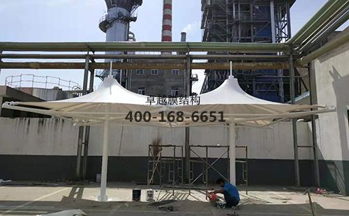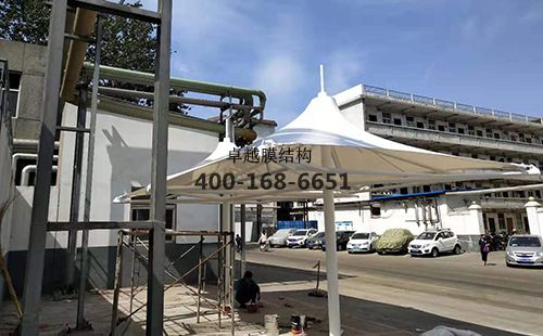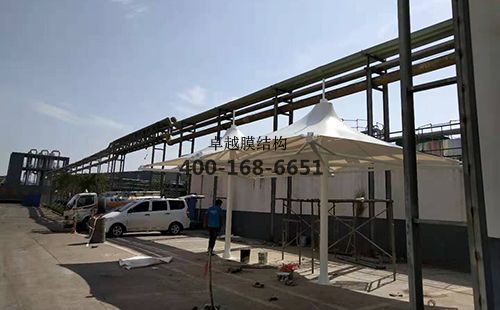 焦作隆豐皮草膜結構涼亭/遮陽傘膜結構、鋼結構設計、加工、運輸、安裝。