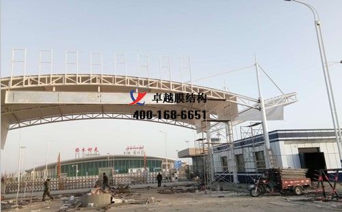 大門膜結構工程項目,11月15日我們卓越膜結構公司人員開始到現場施工。12月6日竣工。