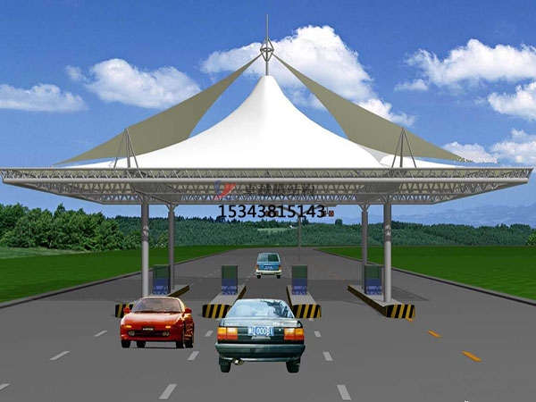 膜結構收費站在結構的穩定性,耐久性、抗風性、抗雨雪性對比傳統的彩鋼板有著不可比擬的優勢,膜結構收費站罩棚穩定可靠,質量保證周期長達20年,后期幾乎不需要維護,膜結構本身的應力結構在遇到雨雪天氣膜結構本身的結構特性也可以保證其大跨度的抗壓穩定性。