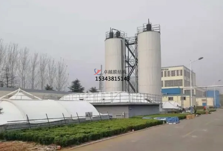 污水池反吊膜采用的膜材抗腐蝕性能高,抗撕扯抗氧化能力好,不僅可以克服外界的不良環(huán)境(如風(fēng)載,雪載)等,而且自身采用優(yōu)質(zhì)PVDF涂層,經(jīng)過uv光固化處理,具有防霉抗菌作用。廢氣收集效率高;污水池加蓋反吊膜結(jié)構(gòu)之所以受歡迎,是因?yàn)槠鋸U氣收集率高,做到對(duì)環(huán)境的零污染。