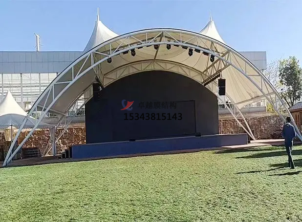 3.可展性和自適應性:舞臺膜結構可以看作是一種人造的自適應體系,同許多自然有機體一樣,可根據需要改變自身的形式。它們的空間布置和對天氣變化的反應具有靈活性和自適應性。通過控制自然光和內部溫充可達到主動節能的目的。可展結構即可開敞也可閉合,它的靈活性使其可以改變空間的屬性。精心設計的可展屋蓋的優雅滑動體現了人與自然的和諧。它被稱作是一種創造,輕型與可展性的充分結合形成了“免施工房屋”的概念,這種結構任何需要的時間或地點均可實現。
