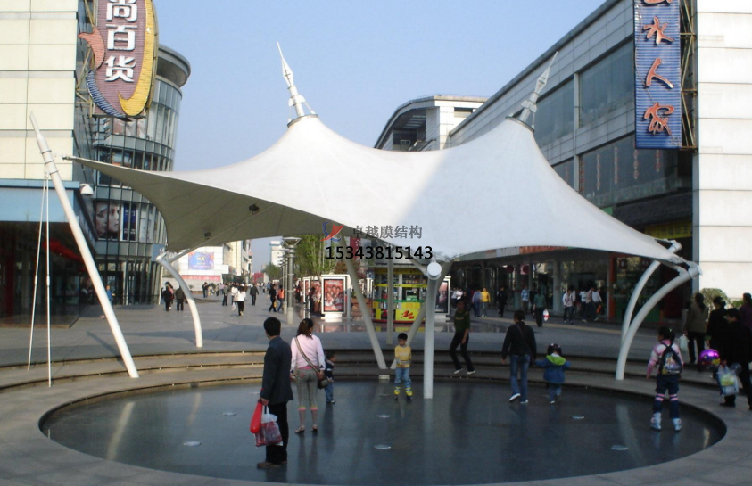 隨著我國經濟快速發展,商業設施規劃建設要求越來越嚴格,高強調采用現代新型建筑,提升整體建筑時尚美觀。這不,如今在繁華商業廣場上頻繁出現有新型膜結構遮陽雨棚的身影,深受商業建筑歡迎。