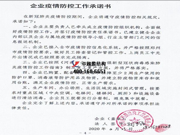 今天你復工了嗎?我們卓越膜結構工程有限公司經過層層審批,更終批準于2020年3月2號正式復工。