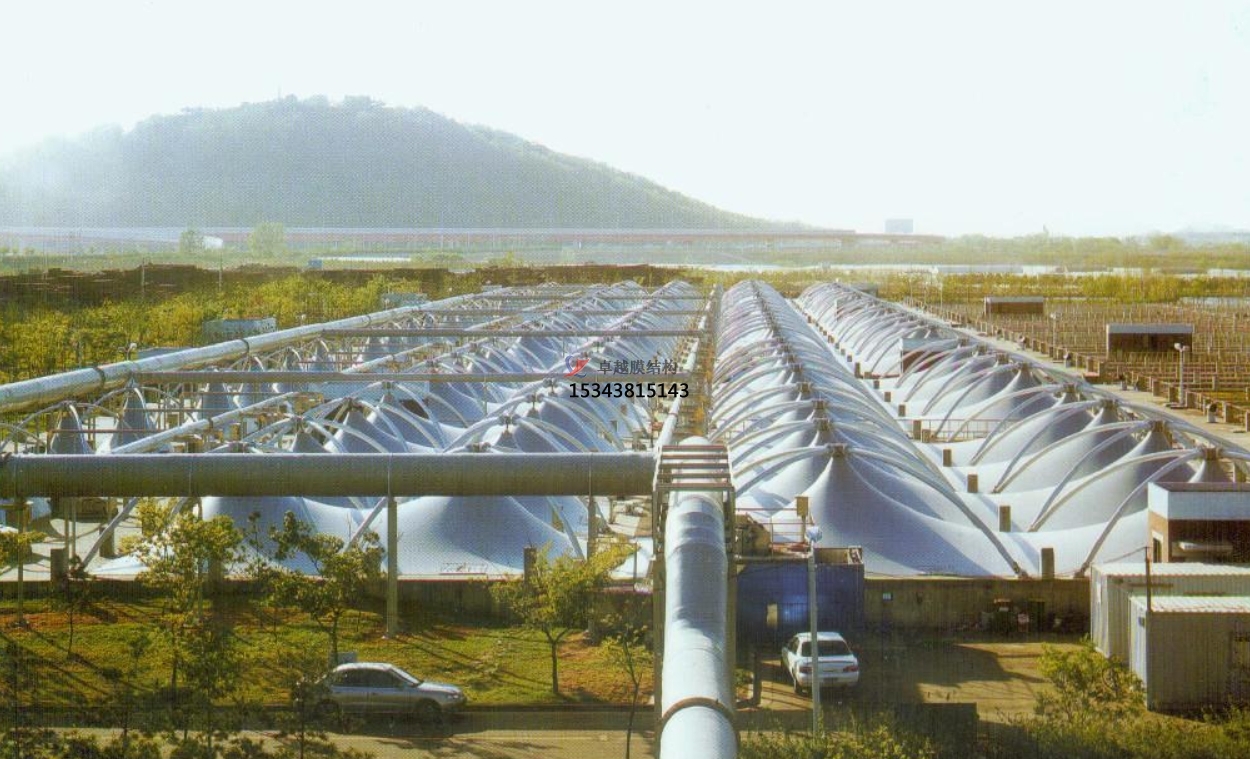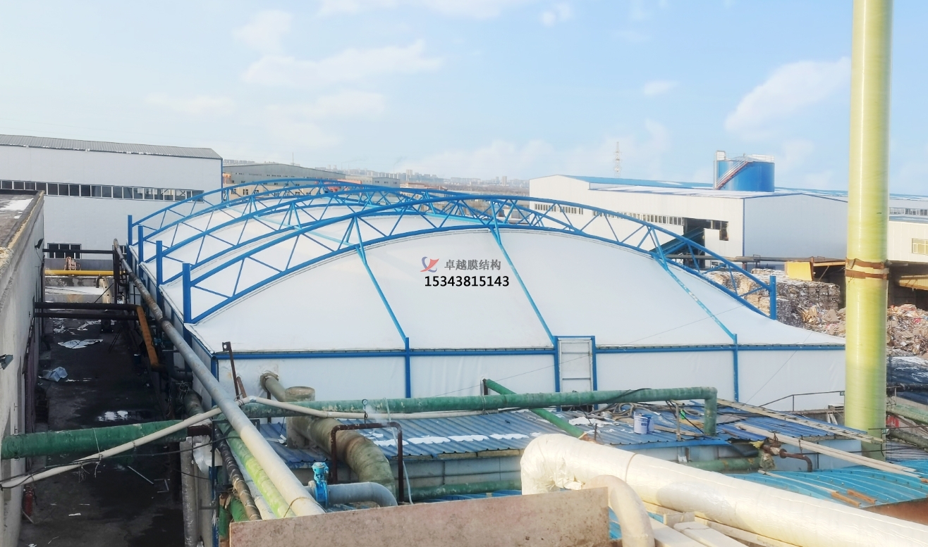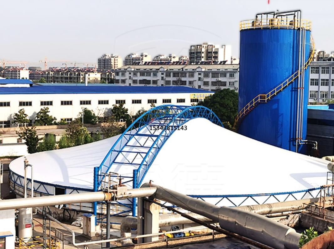 污水池反吊膜技術(shù)是一種利用膜材反吊的原理,將鋼結(jié)構(gòu)在外將膜材懸吊,利用膜材的氣密性特點,將廢氣密封在一個密閉的空間,進(jìn)而將凈化后的廢氣排出池外,達(dá)到排放標(biāo)準(zhǔn)的技術(shù)。它采用以鋼構(gòu)為支撐,膜材反吊覆蓋的膜結(jié)構(gòu)形式,即抗腐蝕能力很強(qiáng)的新型環(huán)保膜材將廢氣量住,而鋼結(jié)構(gòu)則在外面將膜懸吊起來。
