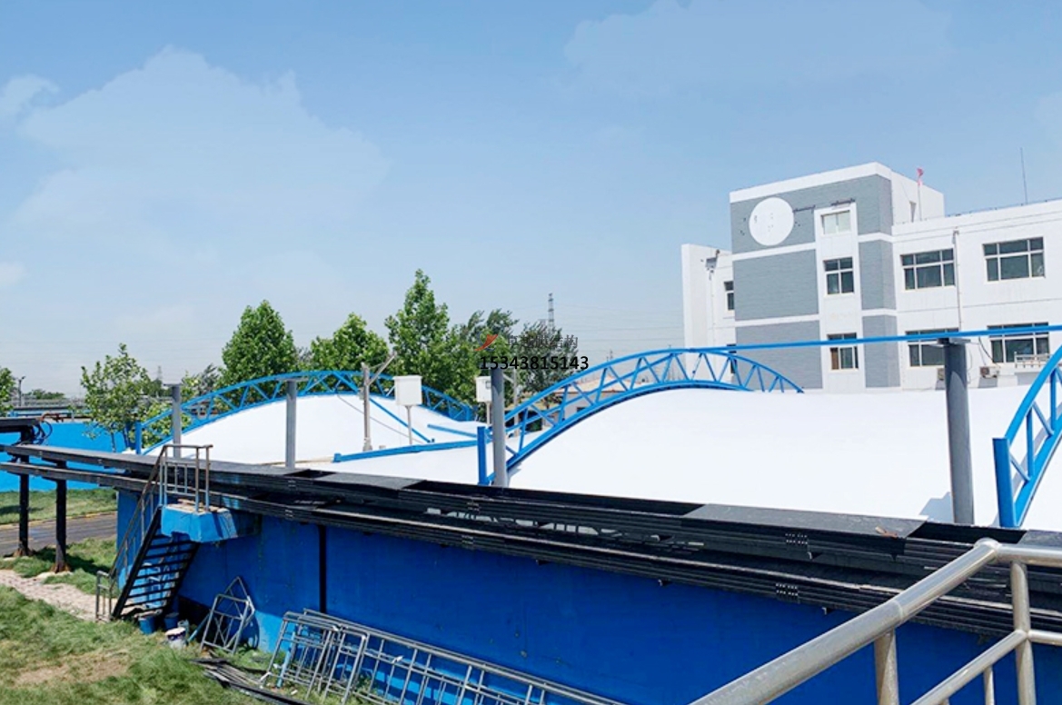 3、適用池體多樣:反吊膜以鋼結(jié)構(gòu)為支撐,膜材料反吊覆蓋,可根據(jù)不同池體的跨度、形狀進(jìn)行定制。無論是圓形、方形